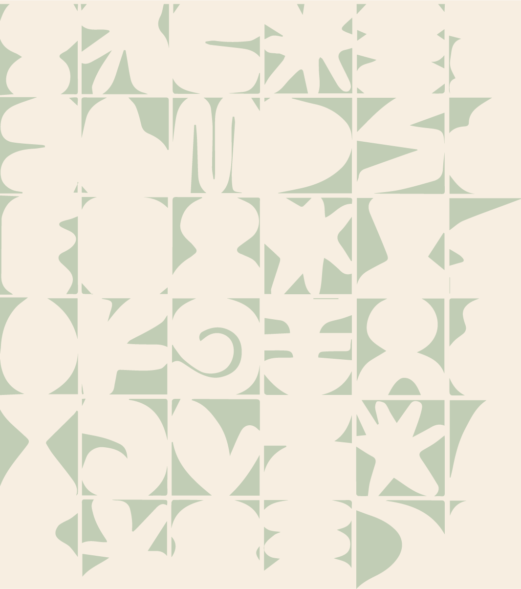 Abstract geometric pattern with various shapes in light beige and muted green colors.