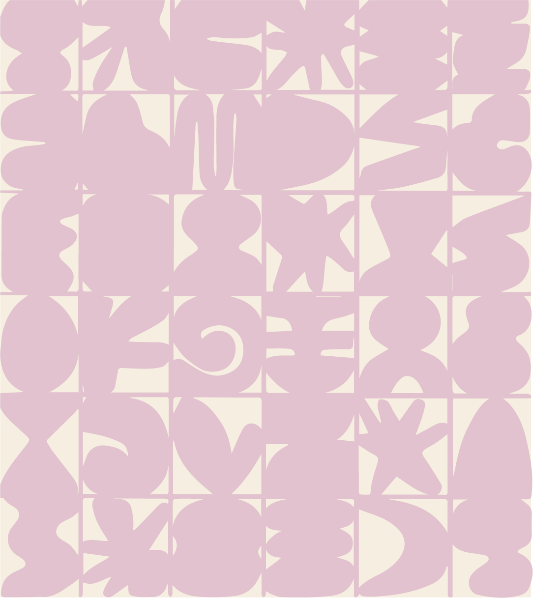 Abstract pattern with various shapes in light purple on a cream background.